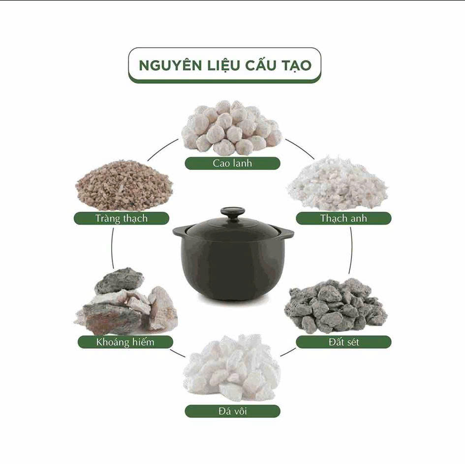 Điểm cốt lõi giúp nồi sứ Healthy Cook khác biệt nằm ở chất liệu và cơ chế nấu. Nồi được chế tác từ công thức độc quyền gồm đất, đá tinh tuyển, cao lanh, tràng thạch, thạch anh và các khoáng hiếm thiên nhiên. Nhờ vậy, sản phẩm không sản sinh độc tố trong suốt quá trình nấu, bảo toàn trọn vẹn vitamin và khoáng chất trong thực phẩm.