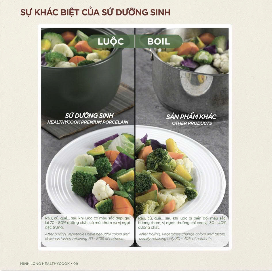 Triết lý này khẳng định: một bữa ăn ngon không chỉ đến từ nguyên liệu tươi sạch mà còn phụ thuộc vào dụng cụ nấu nướng. Với nồi sứ dưỡng sinh Healthy Cook hay các dòng nồi sứ Minh Long, người dùng hoàn toàn yên tâm vì sản phẩm được tạo nên từ đất hiếm thiên nhiên, không chứa chì, cadmium hay kim loại nặng – những yếu tố có nguy cơ tích tụ gây bệnh mãn tính, thậm chí ung thư.